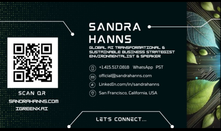 She has created and led influential platforms that give voice to sustainability, including iGreen Media Group, iGreenWoman Magazine, San Francisco Sustainable Fashion Week International (SFSFWI), and Experts United for Sustainable Industries (EUSI). Sandra also co-founded Earth Day San Francisco and has served as a delegate and contributor at the United Nations Commission on the Status of Women (CSW), shaping dialogue on gender, climate, and global collaboration.