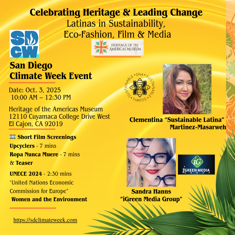 Speakers Clementina Martínez- Masarweh and Sandra Hanns set the stage, introducing their work in film, fashion, media and sustainability. Sandra speaks about AI and sustainability in the new technological era — their special acknowledgment of Hispanic Heritage Month and the power of Latina leadership in climate storytelling.